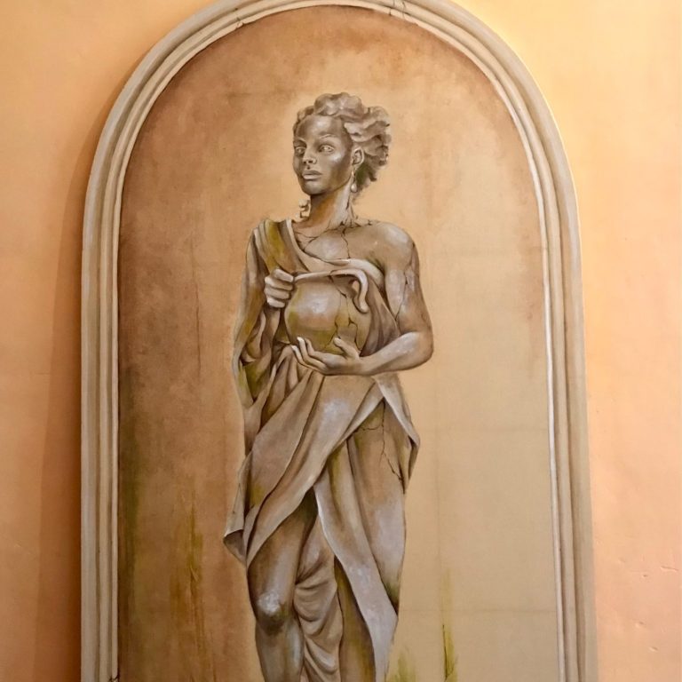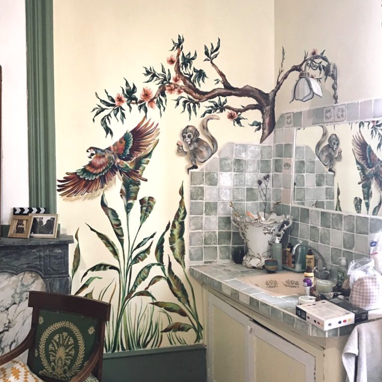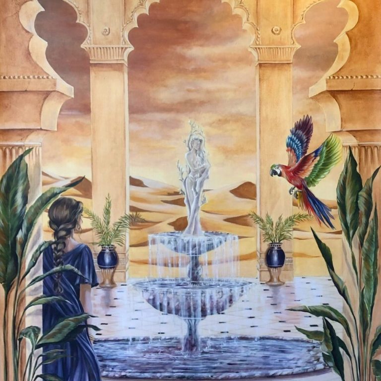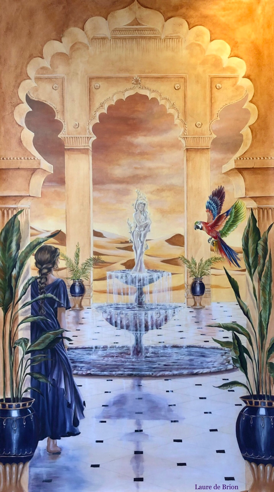 Conçu pour orner une cours intérieure, j’ai réalisé ce panneau à l’acrylique sur bois d’après modèle, le rendant mobile et aisément déplaçable pour décorer n’importe quelle pièce.
