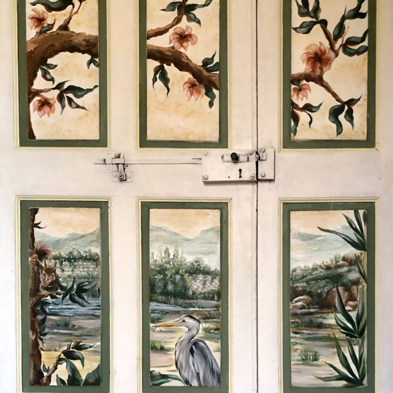 Peinture acrylique réalisée sur une porte en bois du XIXe.