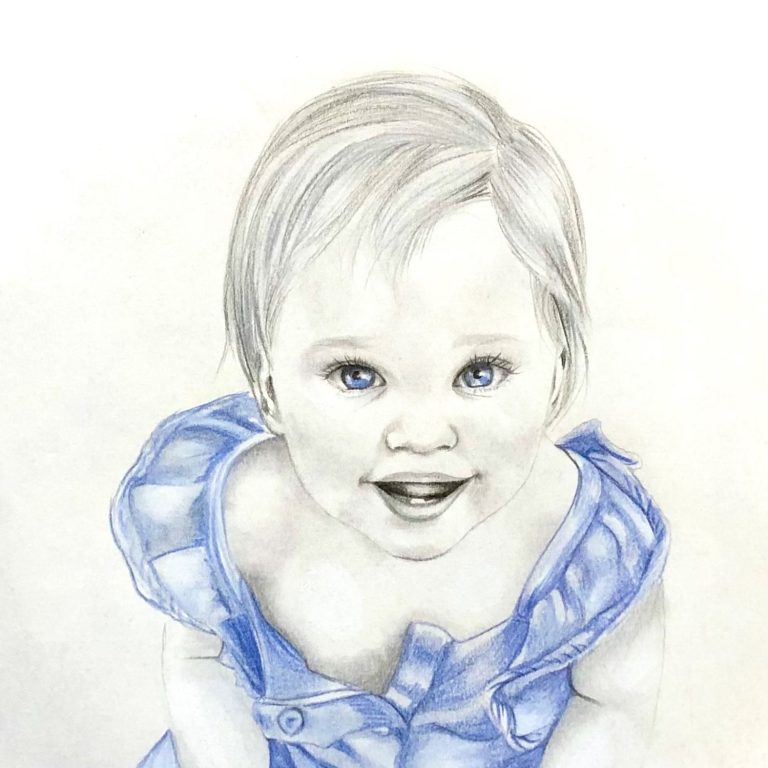 Commande de portrait d’enfant. L’idée était de mettre en avant le bleu de ses yeux tout en restant sobre dans la technique.